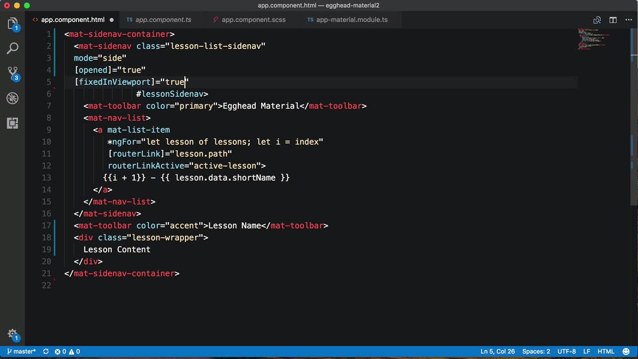 We will be creating a collapsible side navigation content on a menu icon click and on the click of the items inside the sidenav, different router components will be loaded in the primary content. We are using sidenav.toggle()from angular material function which basically closes the sidebar completely and if i don't use toggle() function side mode for navbar does not ….. Above these are modules import and export in your own ngmodule.